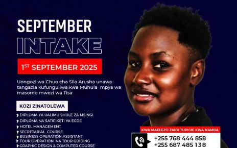 Chuo Cha Sila Arusha, kinapenda kuwatangazia kufunguliwa Kwa Dirisha la usajili Kwa Mwezi wa kwanza almaarufu kama (JANUARY INTAKE) Udahili utaanza tarehe 06 Januari 2025. Nyote mnakaribishwa kujiunga.