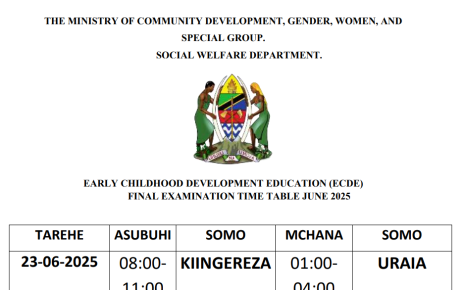 RATIBA YA MTIHANI WA KUMALIZA KOZI YA MALEZI NA MAKUZI YA MTOTO (NGAZI YA CHETI)